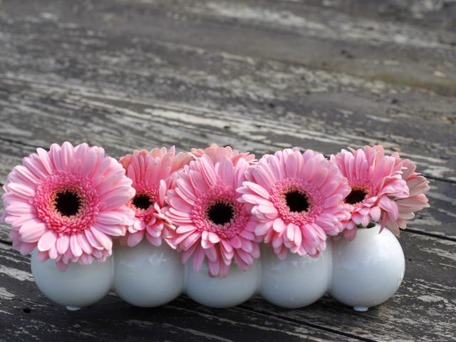 Wallpaper Small pink gerbera flowers in white vases