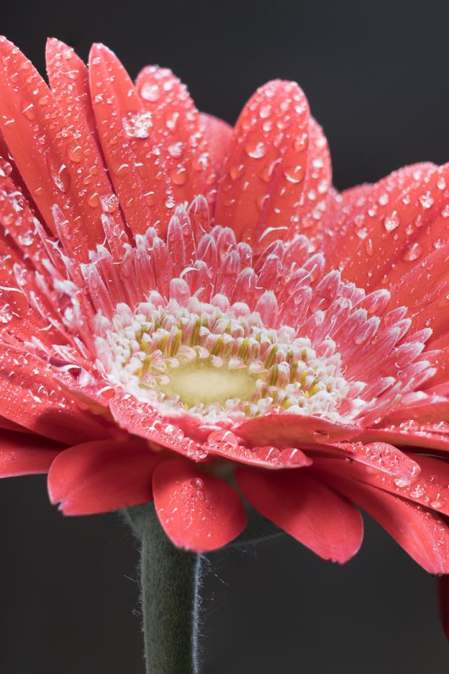 Wallpaper Delicate creamy gerbera flower with dew drops