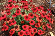 Wallpaper A bush of red flowers of echinacea on the flowerbed