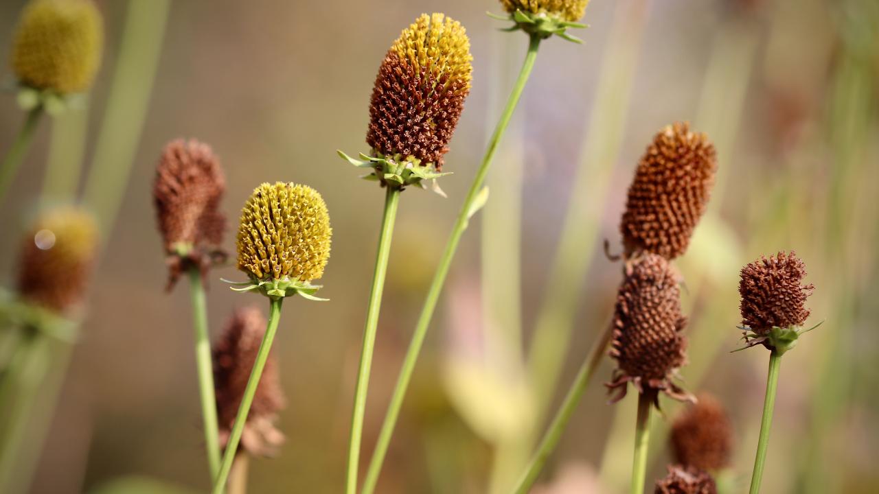 Wallpaper Pink Echinacea flowers close-up on a flower bed