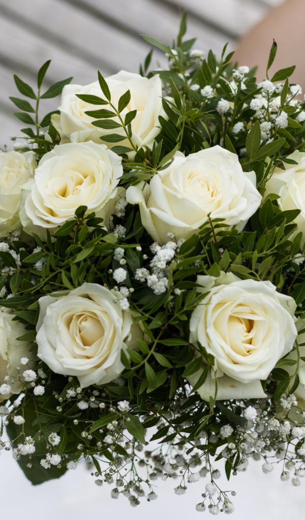 Wallpaper Wedding bouquet of white roses in the hand of the bride