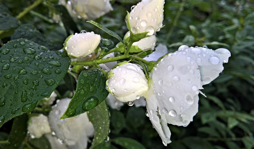 Wallpaper Fragrant jasmine flower with buds after rain