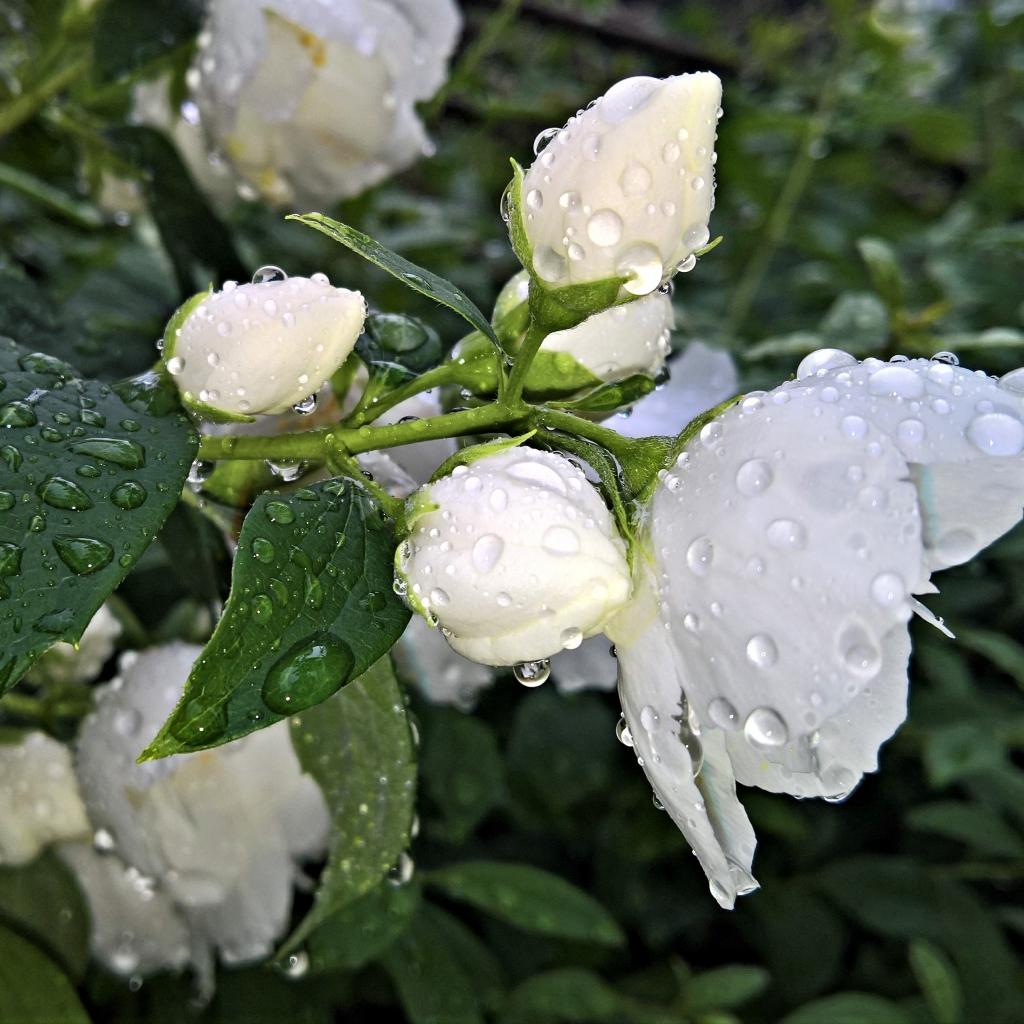 Wallpaper Fragrant jasmine flower with buds after rain