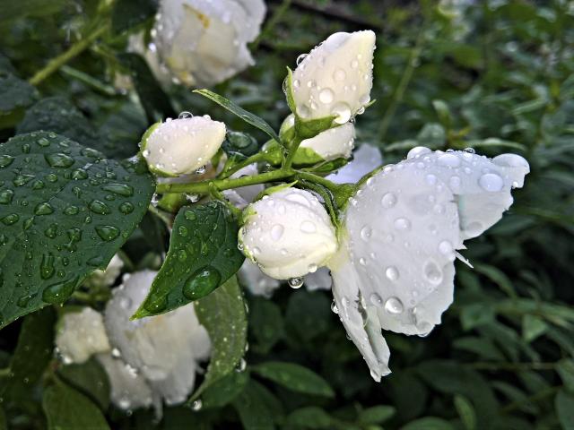Wallpaper Fragrant jasmine flower with buds after rain