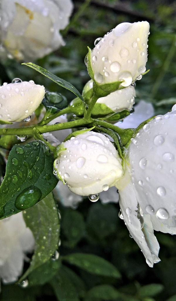 Wallpaper Fragrant jasmine flower with buds after rain