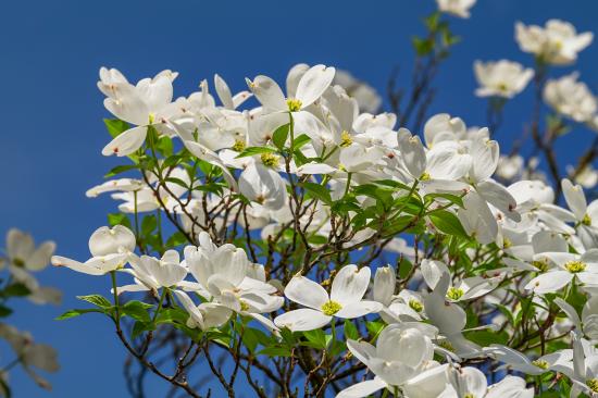 Wallpaper Beautiful white flowers on a bush under the blue sky