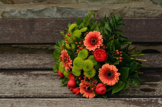 Wallpaper Beautiful big bouquet of flowers on a wooden bench