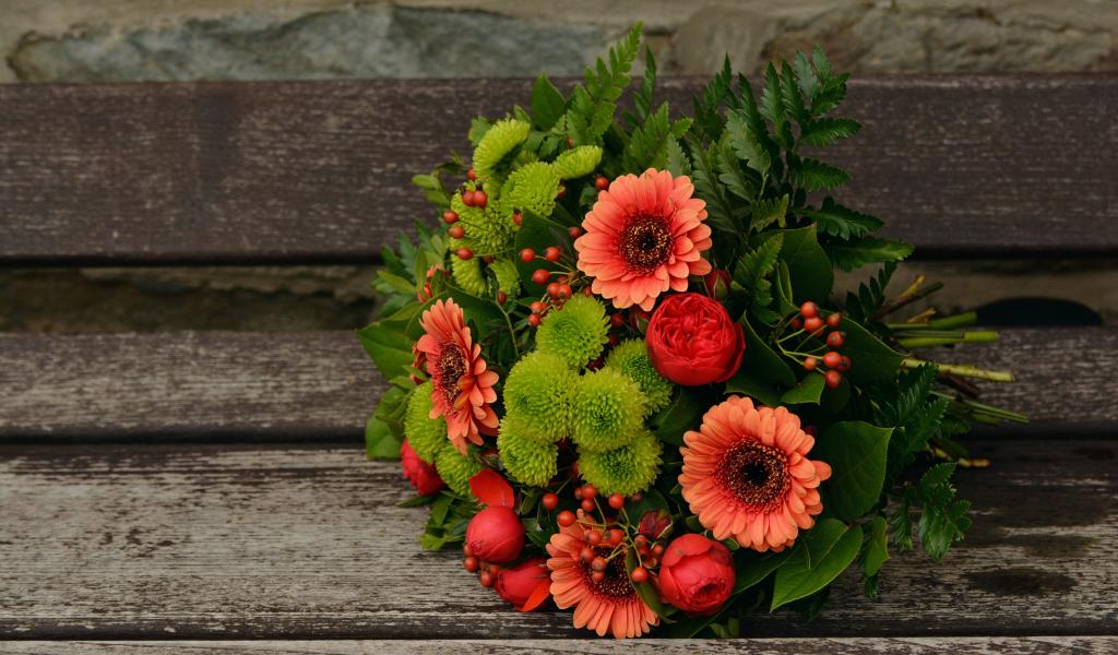 Wallpaper Beautiful bouquet on a wooden bench