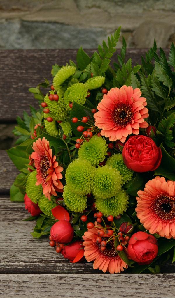 Wallpaper Beautiful big bouquet of flowers on a wooden bench