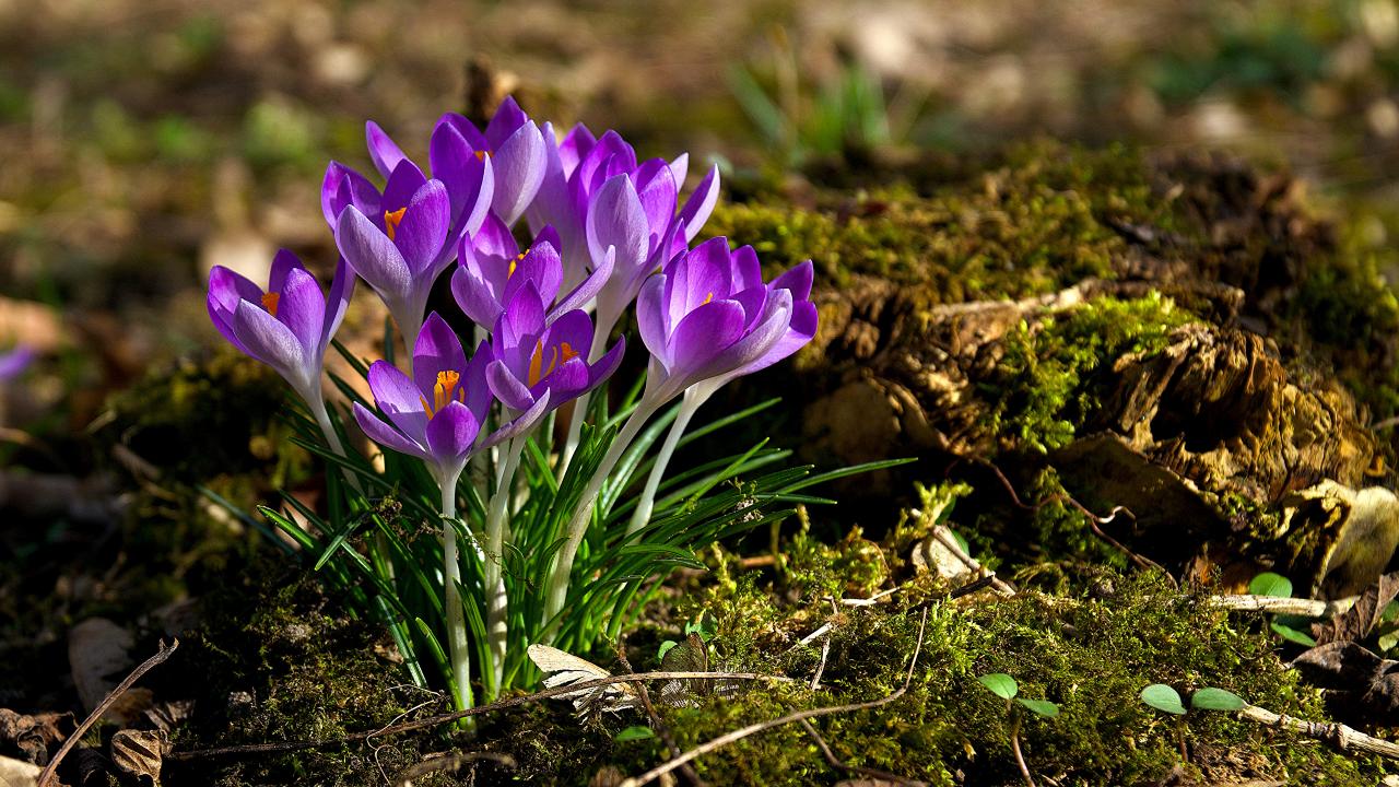 Wallpaper A bunch of lilac crocus flowers in the sun