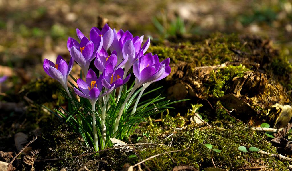 Wallpaper A bunch of lilac crocus flowers in the sun