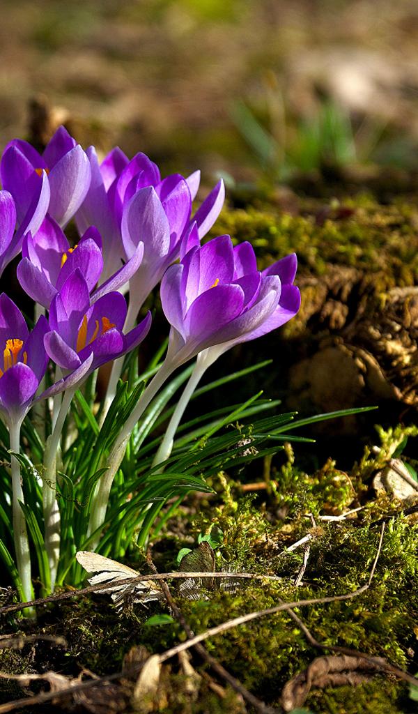 Wallpaper A bunch of lilac crocus flowers in the sun