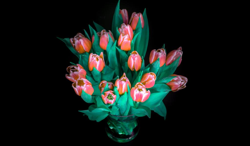 Wallpaper Beautiful bouquet of tulips in a vase on a black background