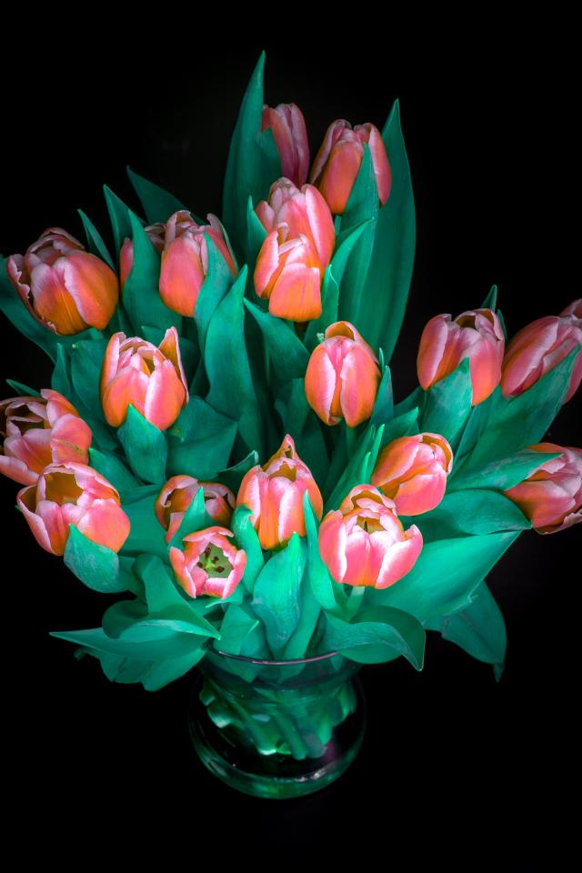 Wallpaper Beautiful bouquet of tulips in a vase on a black background