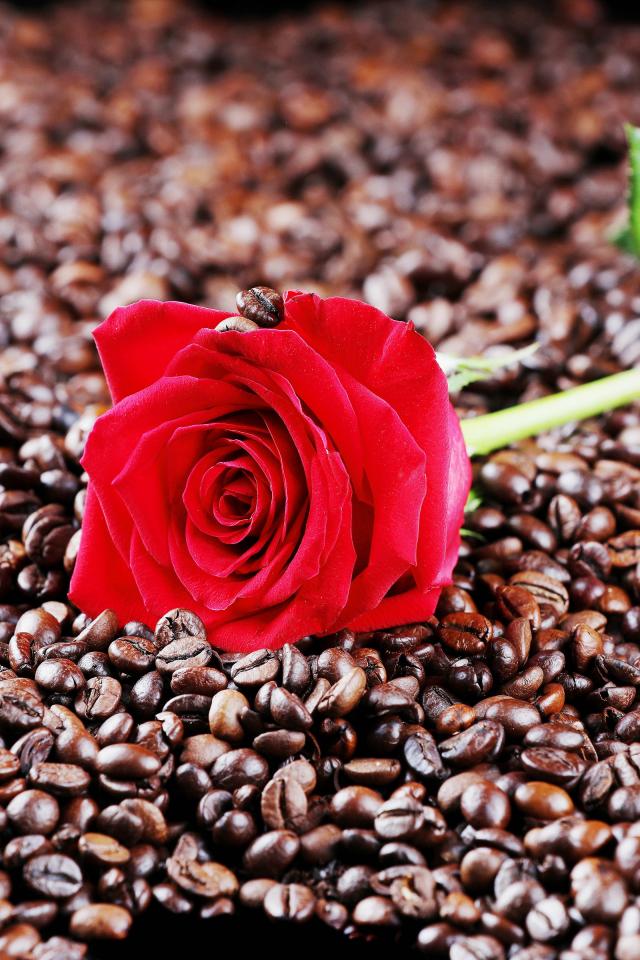Wallpaper Red rose lies on coffee beans
