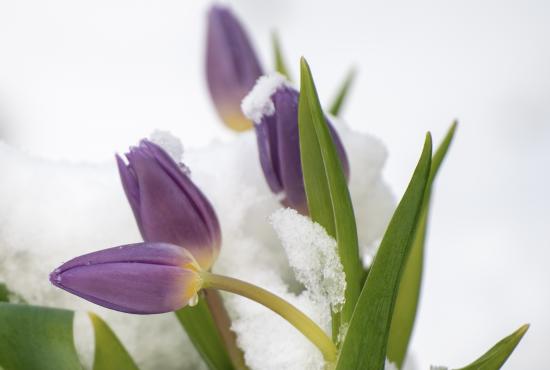 Wallpaper Purple tulips in the drops of a rose in the morning