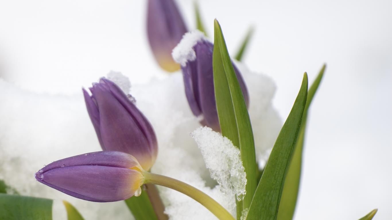 » Wallpaper Purple tulips in the snow