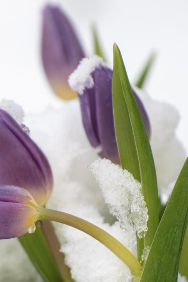 Wallpaper Purple tulips in the snow