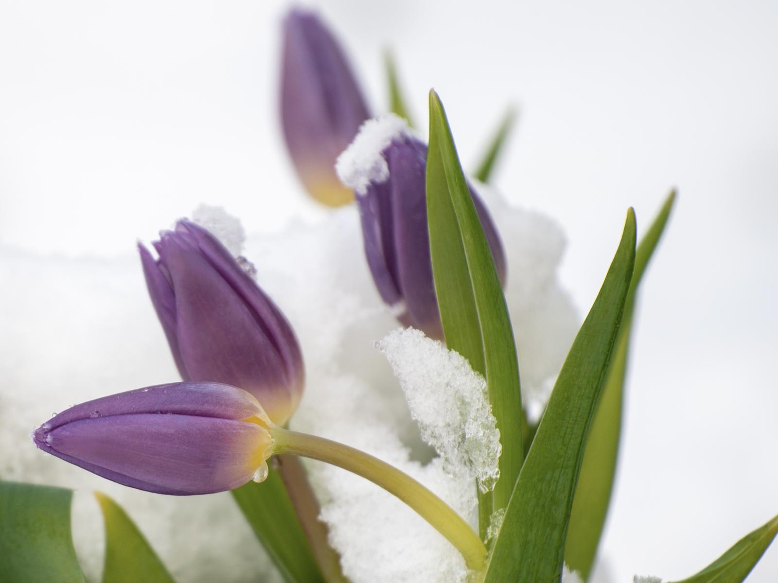 » Wallpaper Purple tulips in the snow