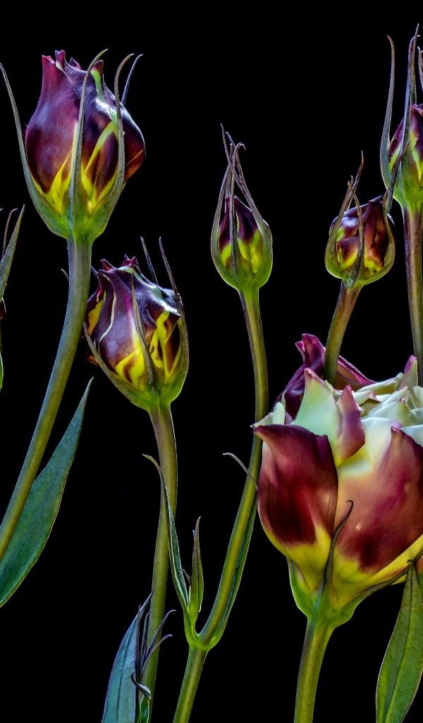 Wallpaper Eustoma flowers bloom on a black background
