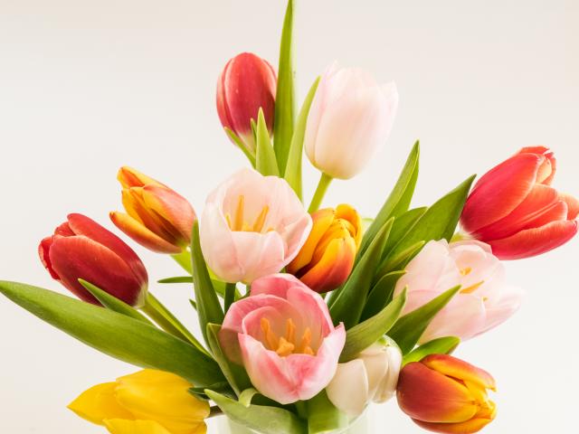 Wallpaper Buds of colorful tulips on a gray background