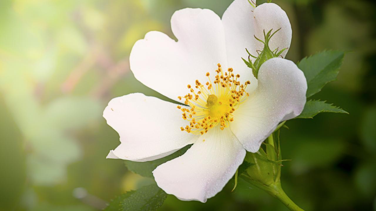 Wallpaper Delicate creamy rosehip flower with bud