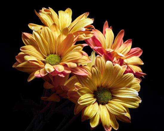 Wallpaper Four orange chrysanthemum flowers on a black background