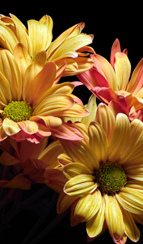Wallpaper Four orange chrysanthemum flowers on a black background