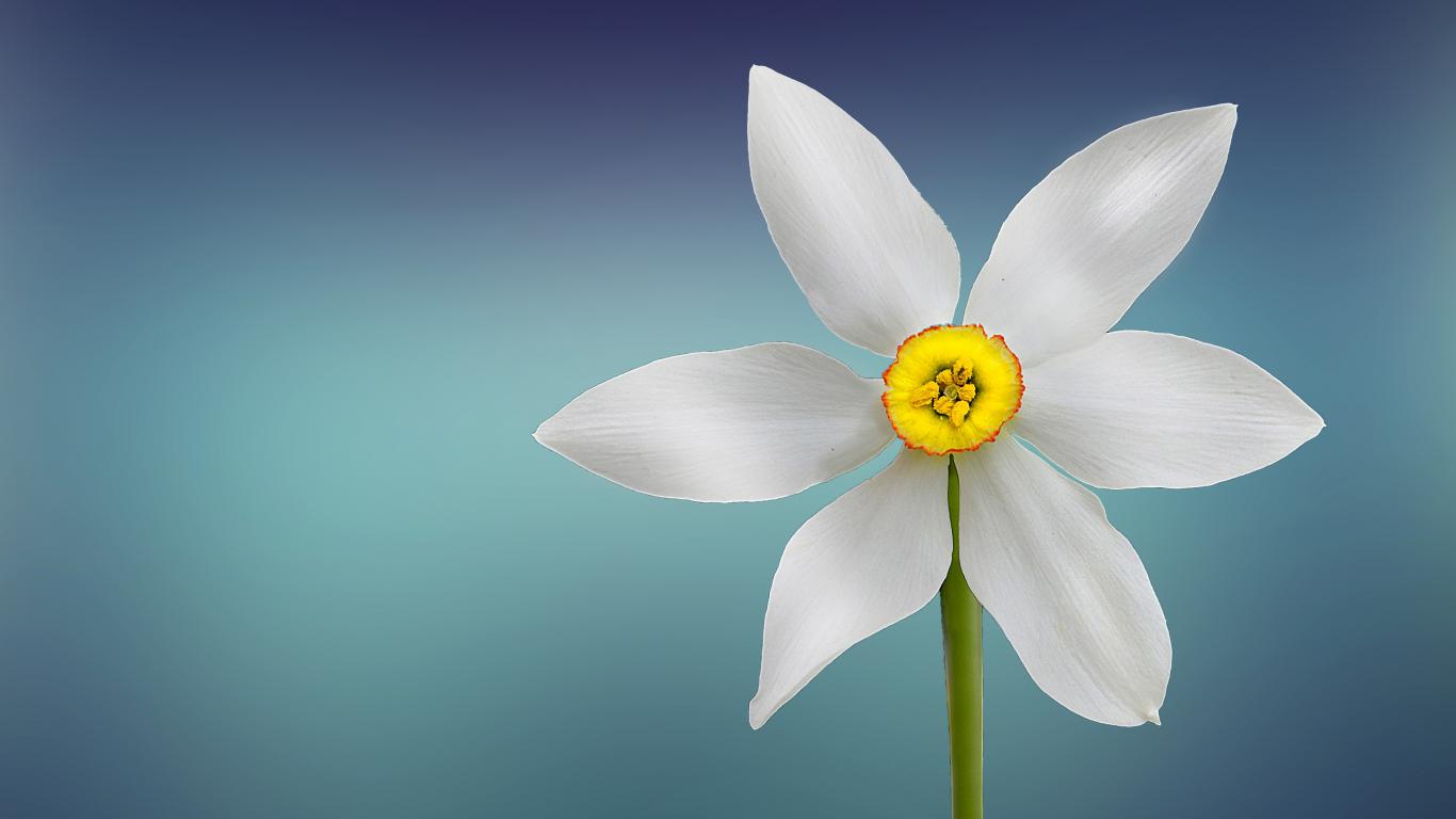 Wallpaper White daffodil flower on a blue background close up