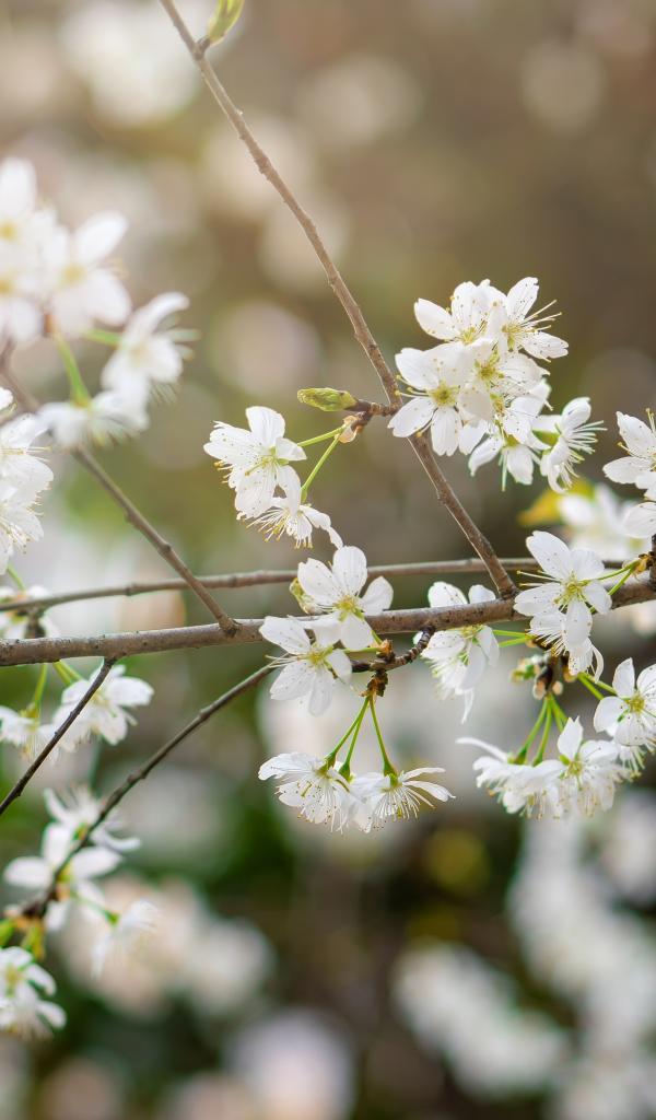 Wallpaper White cherry flowers on a thin branch