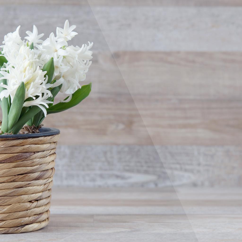 Wallpaper White hyacinth flowers in a pot on a wall background