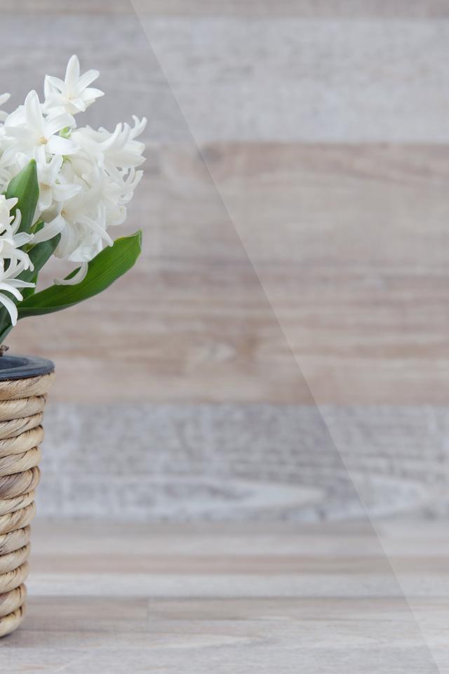 Wallpaper White hyacinth flowers in a pot on a wall background