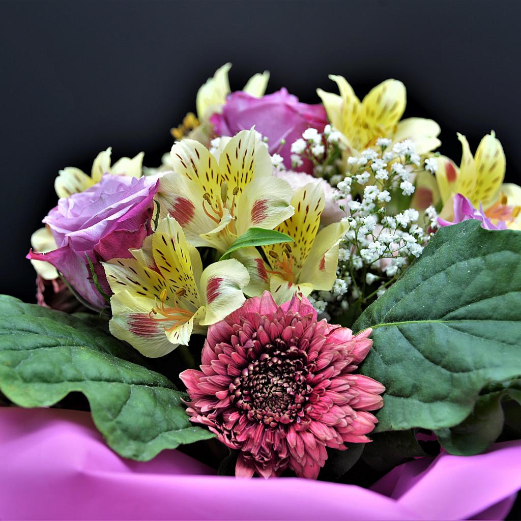 Wallpaper Colorful bouquet of rose, alstroemeria and gerbera flowers