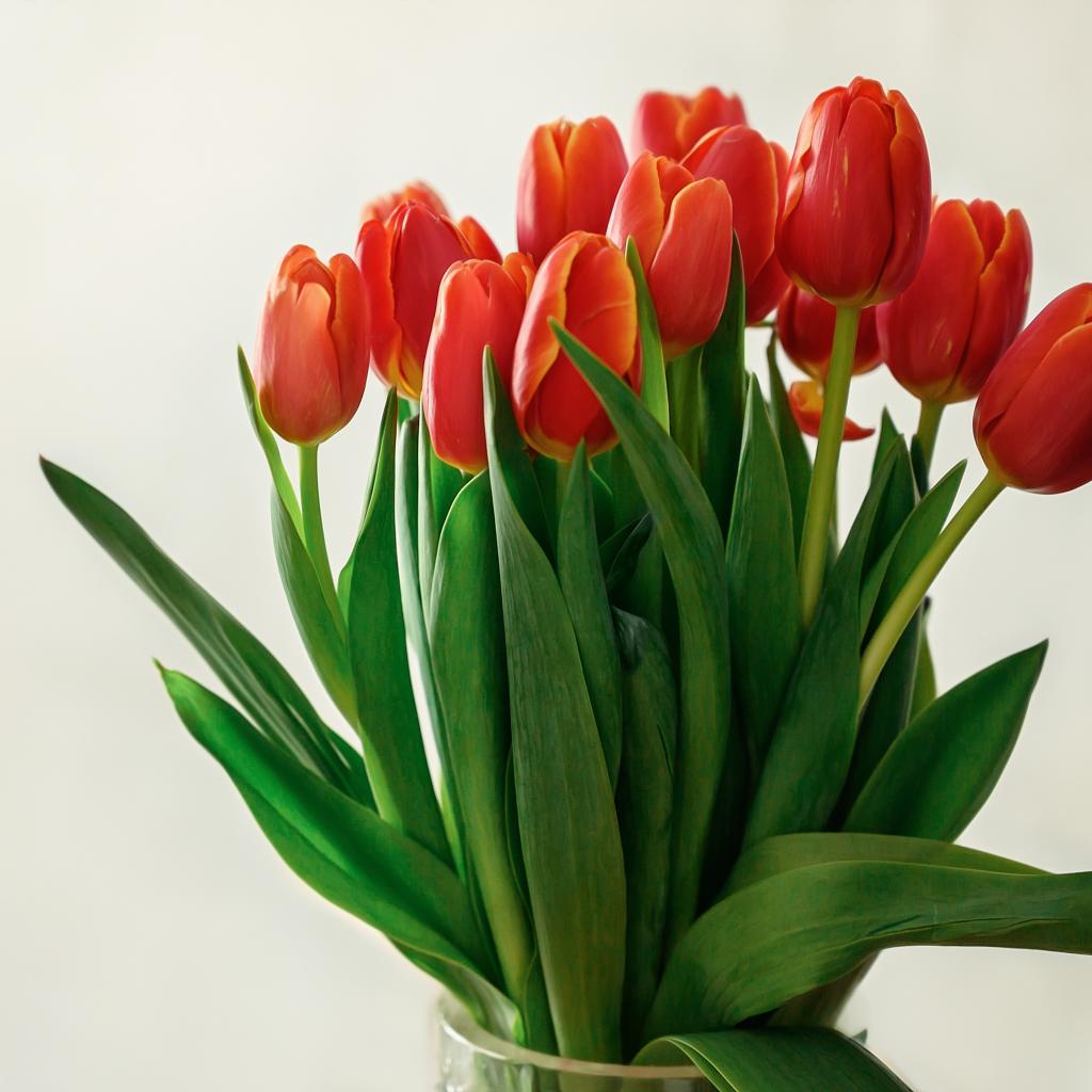 Wallpaper Large bouquet of red tulips in a vase on a white background