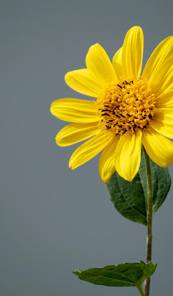 Wallpaper Yellow Jerusalem artichoke flower on gray background