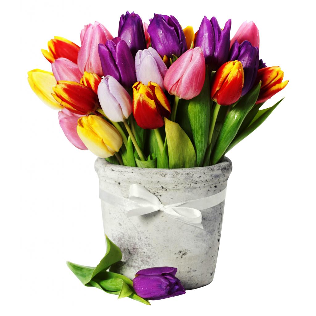 Wallpaper Bouquet of colorful tulips in a vase on a white background