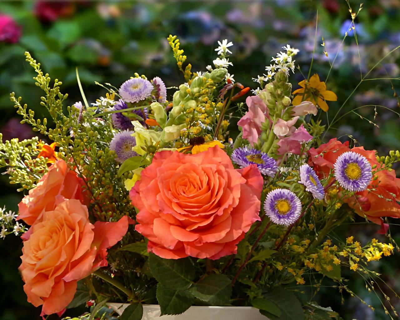 Wallpaper Bouquet of wild flowers with roses close up