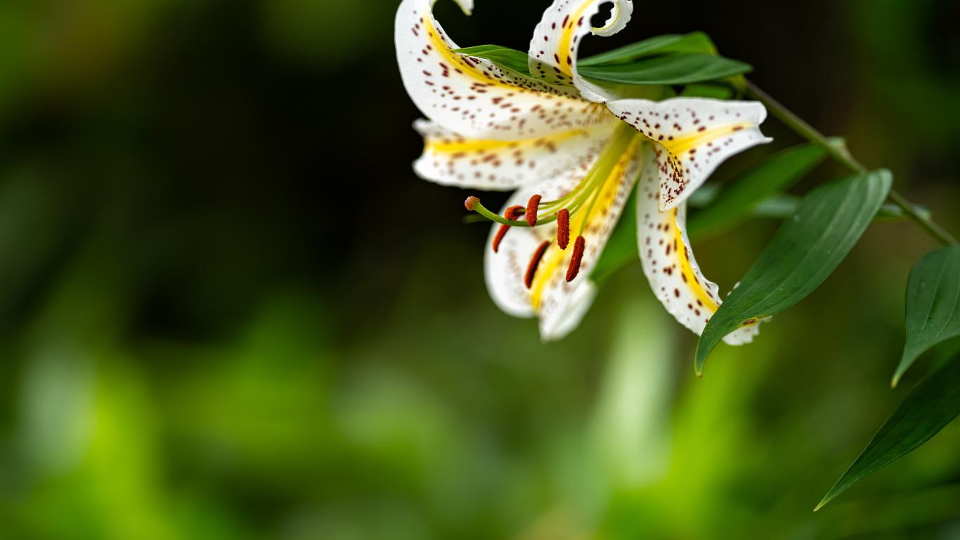 Wallpaper Beautiful white tiger lily on a flower bed