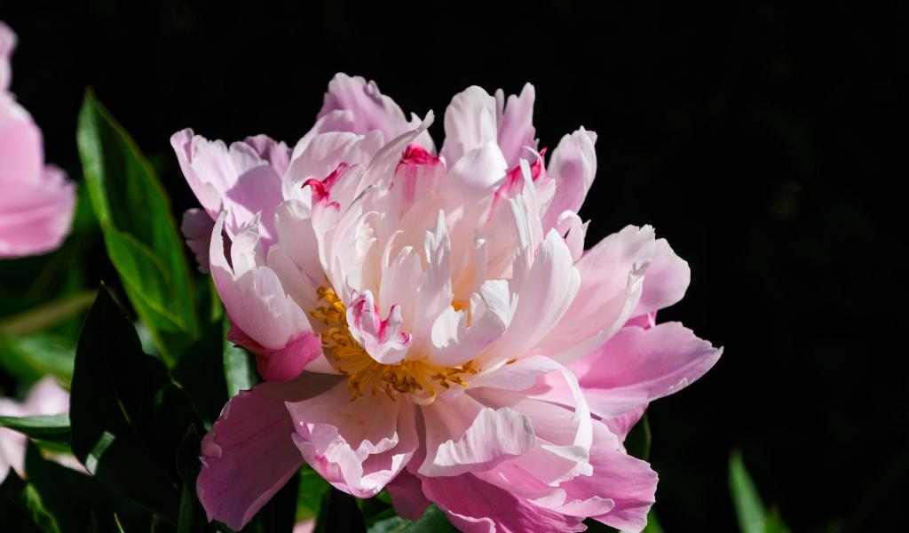 Wallpaper Pink peony flower on black background