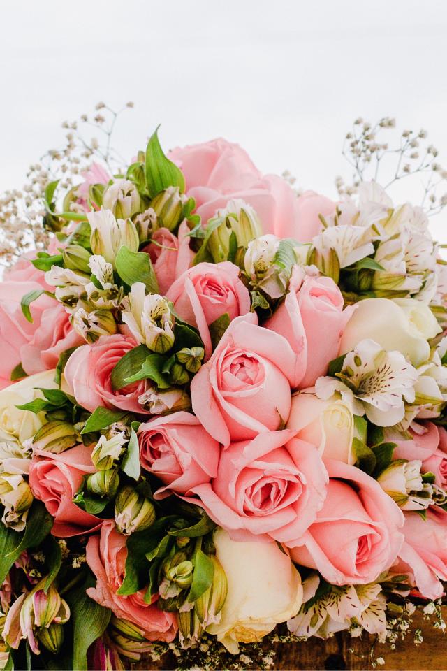 Wallpaper Beautiful wedding bouquet of pink roses on white railing