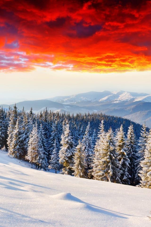 Wallpaper Mountain forest fire under the sky