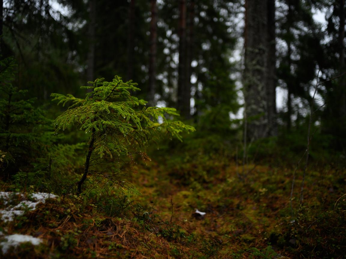 Wallpaper Little spruce in the coniferous forest
