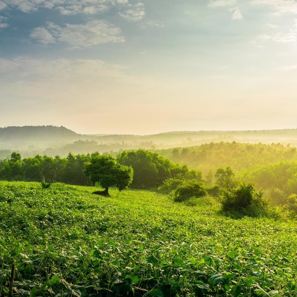Wallpaper Mist enveloped the green thickets of the forest at dawn