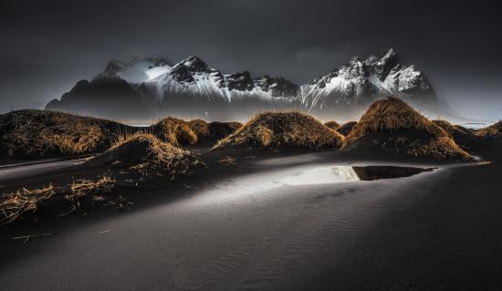 Wallpaper Grey sand on a background of mountains