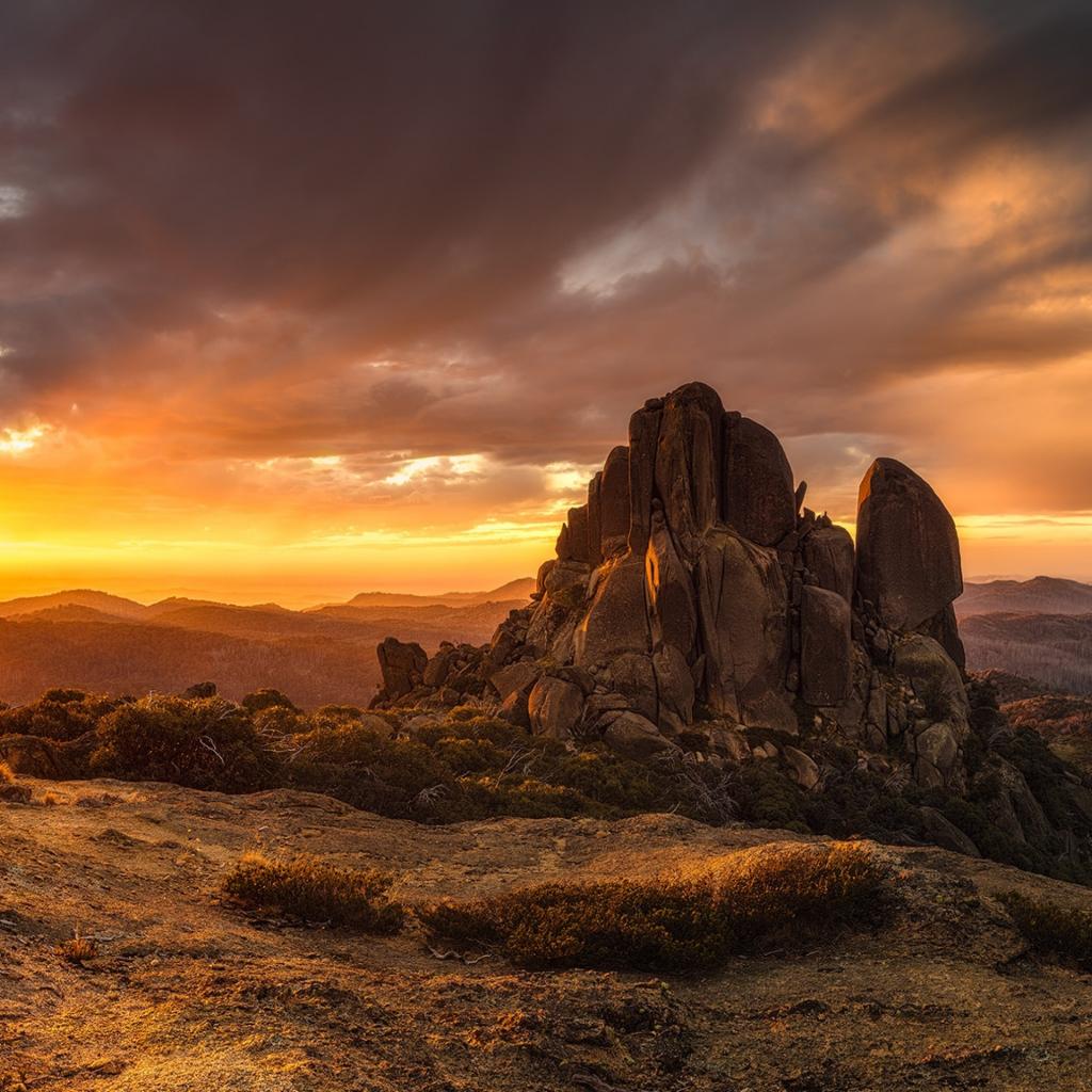Wallpaper Rock in the rays of the rising sun
