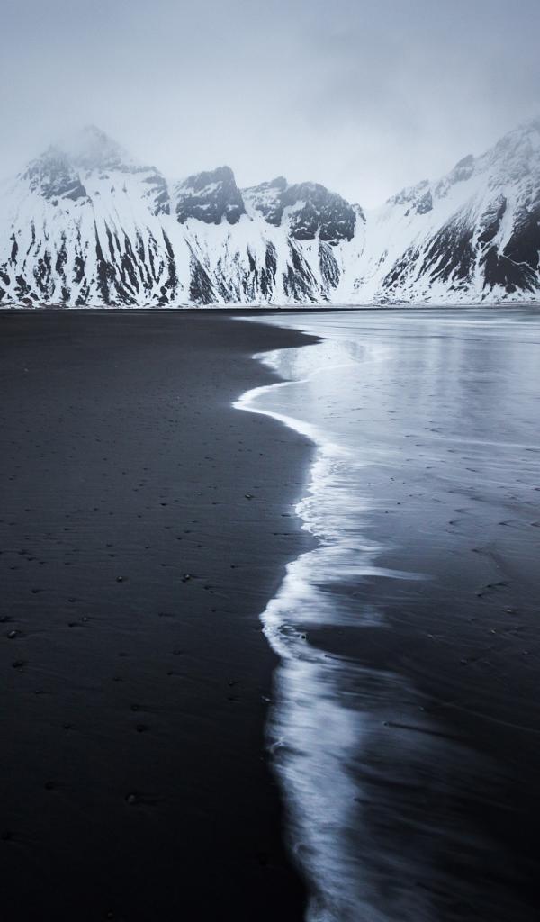 Wallpaper Snow-covered mountains near the desert beach