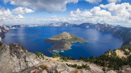 Wallpaper Mountains around the pure Lake Creight, USA