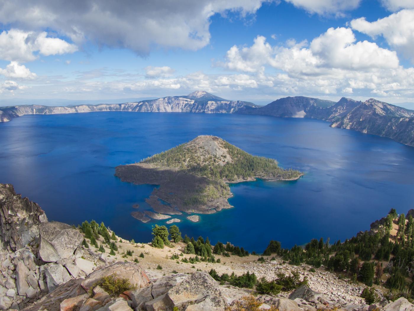 Wallpaper Mountains around the pure Lake Creight, USA