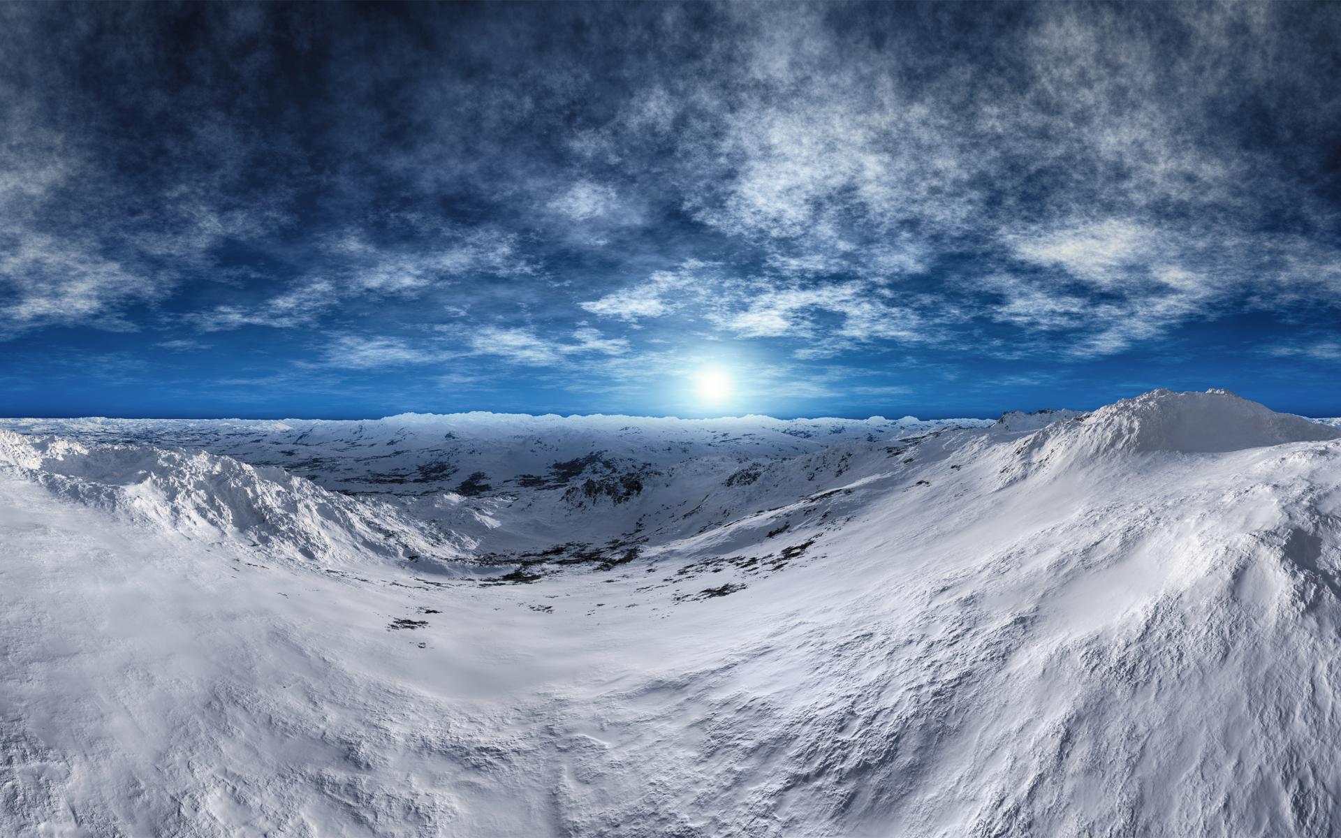 Wallpaper Snow-covered mountain slopes under a beautiful blue sky