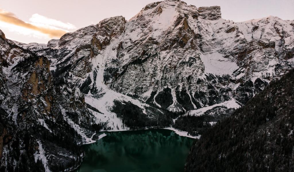 Wallpaper Lake at the snowy mountains